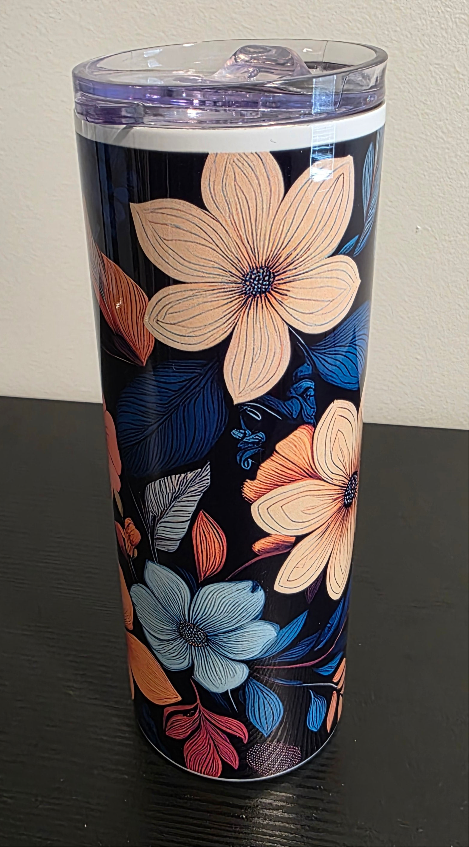 The Spring Flowers tumbler is double-walled, stainless steel and can be used for either hot or cold drinks. With an accompanying stainless steel angled straw and lid, it's great for on the go and made to fit all standard car cup holders.Β